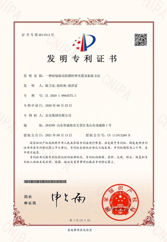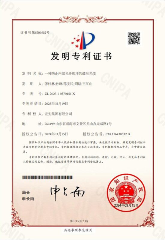 Hong’an Group places great emphasis on collaborative innovation in industry, academia, and research, and has established long-term and stable partnerships with multiple universities, including Harbin Institute of Technology (Weihai) and Shandong University (Weihai). Together, we have developed over a hundred new products for optoelectronic communication cables, won several provincial-level and above science and technology progress awards, and hold more than 200 national patents.